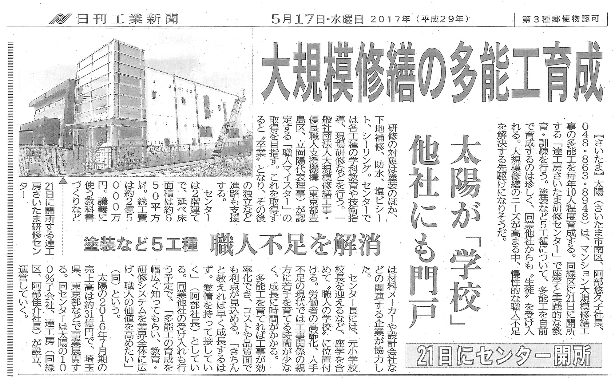 「日刊工業新聞」に掲載されました。